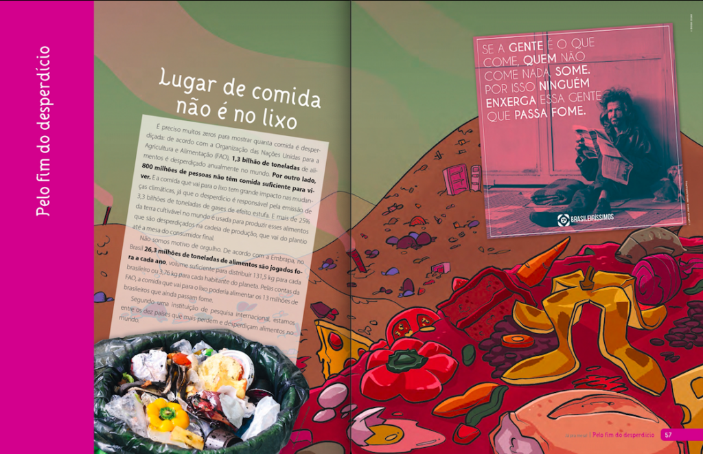 No meu livro Já pra mesa! Vamos falar sobre alimentação? abordo a questão da fome no mundo, do desperdício de comida e do lugar que o Brasil ocupa no volume de alimentos jogados no lixo a cada ano.